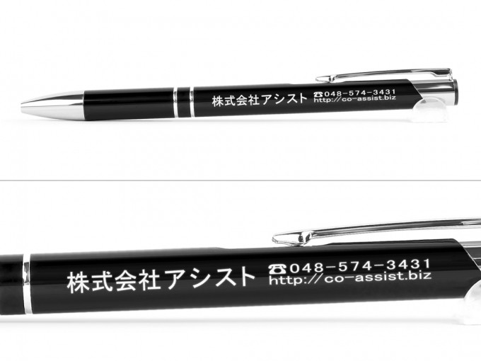 今回ご注文いただいた製品は名入れボールペン市場オリジナルペンのメタリックONEボールペンです。ノベルティ商品として非常に人気の高い商品で、メタル調のボディが美しいボールペンになっております。印刷内容は会社名を大きく入れお電話番号・URLを2段で名入れをしました。本体色は2色お選びいただき白の印刷色で製作してます。