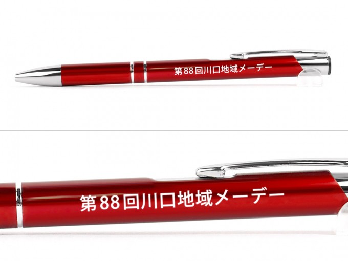 です。名入れボールペン市場の売れ筋NO.1ボールペン!高級感のあるデザイン、質感ですので会社・学校の記念行事などの特別な時を演出するには最適です。今回は本体色 赤に白の印刷色で制作させて頂きクールでとても素敵な仕上がりとなっています。