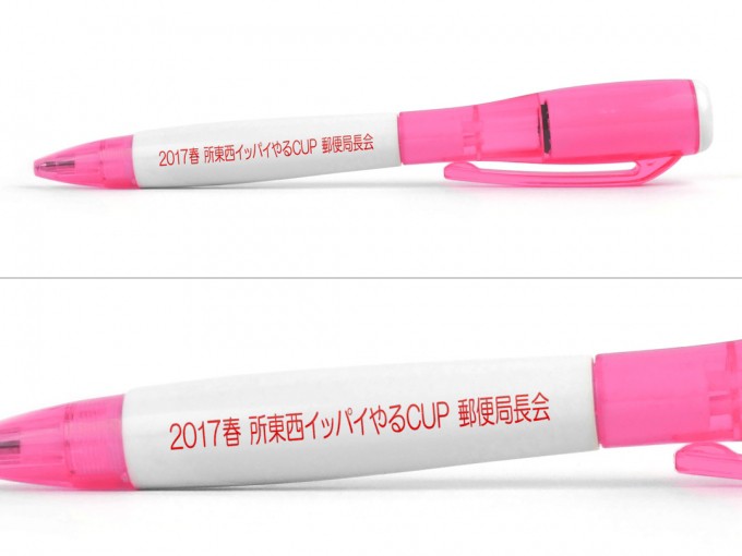 です。LEDライトの付いたボールペンですので暗がりでサインや書類の記入などに使えるので1本あると便利です。ボディが白軸なのでどんな名入れカラーも映えます。今回は赤で名入れしており実用度の高い名入れボールペンに仕上がっています。
