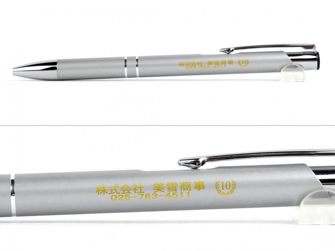 です。名入れボールペン市場で人気NO.1のボールペンです。本体色銀に 金の印刷色で作成していますので華やかな仕上がりになっています。