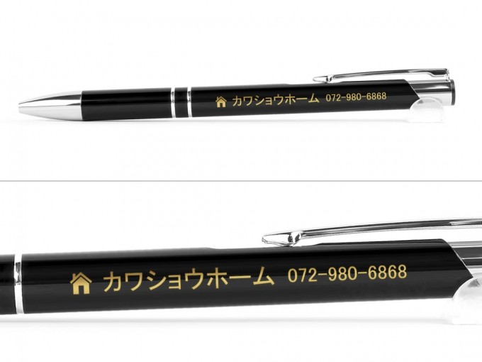 今回名入れボールペン市場にご注文頂いたの名入れペンはオリジナルボールペンのメタリックONEボールペン0.7mmです。高級感のある金属製ボールペンでシンプルなデザインが美しいスタイリッシュなメタリックワンシリーズです。金色での印字は更に高級感が増し綺麗な仕上がりになっています。こちらのボールペンを選ばれるお客様は販促、ノベルティ用途が圧倒的に多く、お店、企業のロゴを宣伝して集客につながっているとのお声をたびたびいただいております。