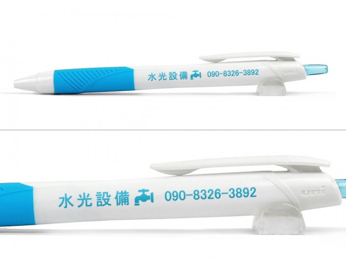 今回名入れボールペン市場にご注文頂いたのはジェットストリーム名入れ専用品0.7mmです。三菱uniが誇るくせになるなめらかな書き味でおなじみのジェットストリーム。数あるジェットストリームシリーズの中でも名入れが一番きれいに映える名入れ専用品白軸で、売れ筋トップ3に毎回入っている人気商品です。白軸のためフルカラー印刷にも対応しており、女性がもらってうれしい名入れペンの人気ランキング上位商品です。印刷内容に弊社オリジナルのイラストを入れさせて頂きました。