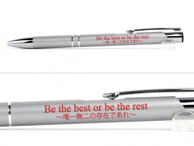 です。金属製ボールペンですので高級感があり、光沢のある美しいカラーとスリムなボディがとても人気です。印刷範囲が広く取れる印刷方法に変えさせて頂き2行で印刷させて頂きました。