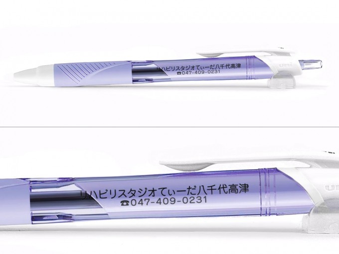 今回名入れボールペン市場にご注文頂いたのは三菱uniのジェットストリームスタンダード(カラフル)0.5㎜です。くせになるなめらかな書き味が人気のジェットストリームシリーズ。優しい色合いの本体色は女性にも人気です。名入れ内容を2行で印刷させて頂きましたが文字が潰れることなくキレイに仕上がりました。