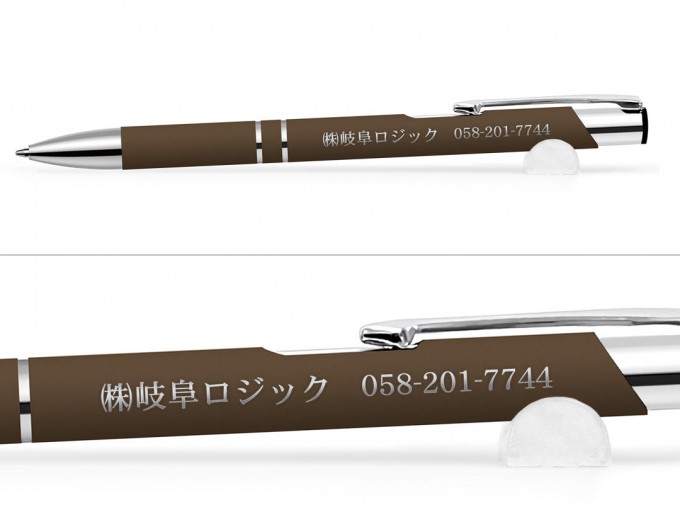 です。高級感のある金属製のボディにマットでさらさらした手触りが心地よいオリジナルボールペンです。艶有り塗装よりペンを握った時に滑りづらく疲れも軽減されます。明朝体での名入れは気品溢れる仕上がりになっています。