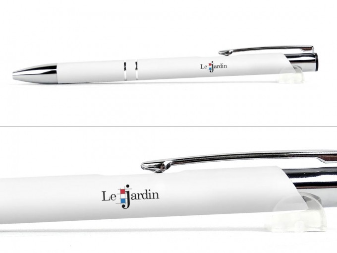 今回名入れボールペン市場にご注文頂いたのは弊社オリジナルボールペンのメタリックONE ボールペン0.7mmです。名入れボールペン市場の中でも常に人気の高い商品の1つです。今回はメタリックONEボールペンの本体・白にフルカラー印刷を致しました。金属製の本体へのフルカラー印刷は他ではあまりございませんので、とても印象に残るボールペンに仕上がります。特に白の本体は非常に綺麗に印刷ができますのでおススメです。