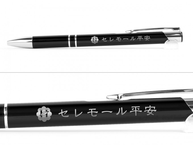 名入れボールペン市場のオリジナル商品 メタリックONE ボールペン 0.7mm に名入れ。販売当初から変わらず人気の高いボールペンの1つです。メタリックONEボールペンシリーズの中でも特にご利用いただいている商品になり、光沢のある金属製のボディが特徴になっています。今回は印刷面が広く取れるPAD印刷という印刷方法で対応を致しました。PAD印刷にすることによってご希望のロゴイラストが通常より大きく印刷することが出来ました。