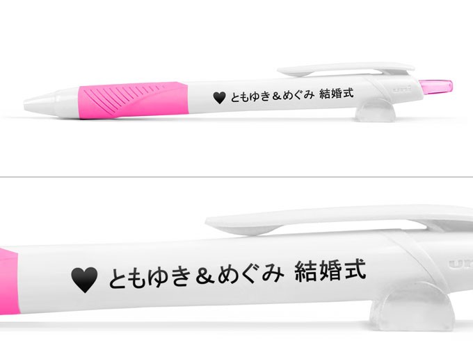 名入れボールペン市場にご注文頂いたのは三菱uniジェットストリーム名入れ専用品 0.7㎜です。誰もが1度は使ったことのある国産ボールペン人気ナンバーワン商品です。くせになるなめらかな書き味でおなじみのジェットストリーム。数ある中でも名入れが一番きれいに映える名入れ専用品白軸です。ハートのイラストがアクセントとなり可愛らしい仕上がりになっています。