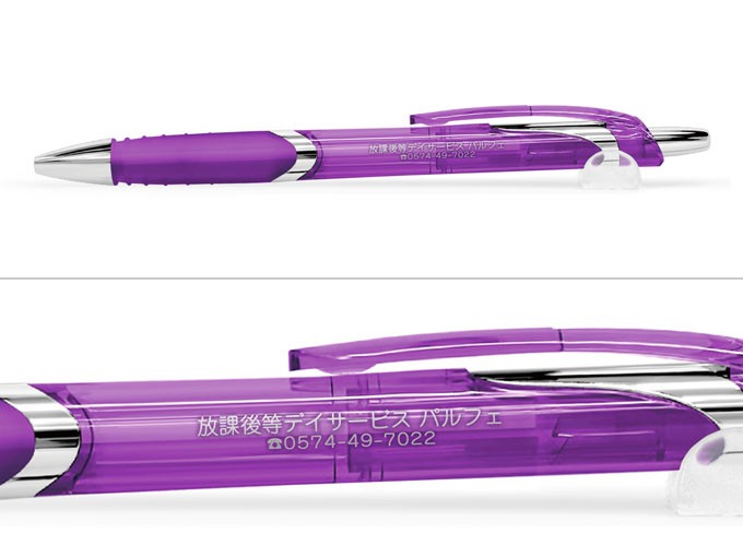 名入れボールペン市場にご注文頂いたのは弊社オリジナルのサラリス(SALARIS)0.7mm エマルジョンタイプインクです。とても書きやすいエマルジョンタイプのインクを使用しております。このインクは油性と水性の良いとこどりの最新のインクで、書きやすさはそのままに国産ボールペンでは実現不可能な低価格でお買い求めできます。本体色をおまかせで頂きましたので、5色アソートで制作させて頂きました。文字数が多い為一文字一文字は小さくなっていますが潰れることなくキレイに仕上がりました。