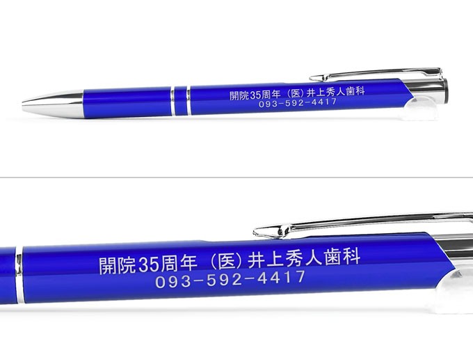 今回名入れボールペン市場にご注文頂いたのは弊社オリジナルのレーザー彫刻 メタリックONE ボールペン 0.7mmです。メタリックONEボールペンの名入れはシルク印刷とレーザー彫刻どちらでも対応しています。レーザー彫刻ですと印刷色のご指定は出来ませんが、印字は半永久的に残ります。記念品として配布するのに相応しい名入れボールペンになっています。
