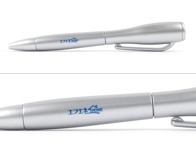 今回名入れボールペン市場にご注文頂いたのは弊社オリジナルのLEDフラッシュライトボールペン シルバー&ホワイトです。ボールペンにLEDライトの付いた変わり種のペンです。災害や停電などの緊急時にライトがとても役立ちます。印刷内容はデータで頂きました。納品をお急ぎでしたので特急納品で対応させて頂きました。
