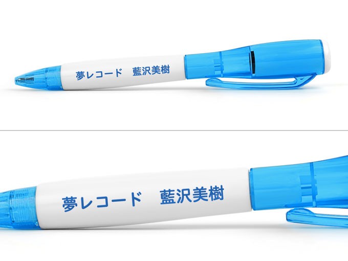 今回名入れボールペン市場にご注文頂いたのは弊社オリジナルのLEDフラッシュライトボールペン パステルです。本体色はカラフルな5色からお選び頂けますので、大人から子供まで貰ってうれしい商品です。芯はドイツ製のインクを使用していますので書き心地もとても良いです。白軸部分に印刷しますのでお好みの色で印刷が可能です。本体色と印刷色が合っていて綺麗な仕上がりになっています。
