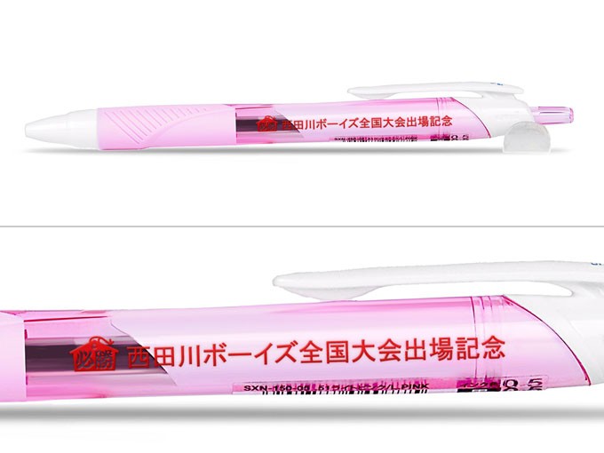 くせになるなめらかな書き味でおなじみ、誰もが1度は使ったことのあるジェットストリームスタンダード(カラフル)0.5㎜へ名入れさせて頂きました。数ある三菱UNIのボールペンの中で大人気商品です。優しい色合いの本体色は老若男女問わずお使い頂けます。印刷は弊社規定のイラストが入り記念品に相応しい仕上がりになっています。ボールペンはOPP(ナイロン製透明袋)に入れさせて頂き納品致しました。