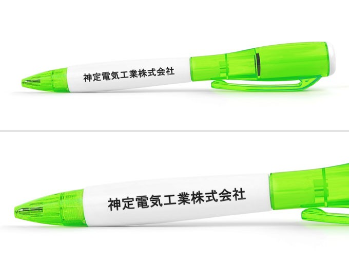 今回名入れボールペン市場にご注文頂いたのは弊社オリジナルのLEDフラッシュライトボールペン パステルです。LEDライト搭載ですので、災害の際の停電時やSOSをしらせたりするのに役立ちます。ボディカラーはカラフルな5色からお好きな色をお選び頂けます。白軸ボディに黒での印刷は文字が映えとても目立っています。販促品に相応しい仕上がりになっています。OPP(ナイロン製透明袋)に入れさせて頂き納品致しました。