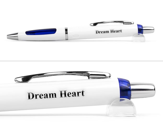 今回ご注文頂きました商品は弊社オリジナル商品のビビットカラーボールペン 0.7mmです。丸みのあるやさしいラインのボディで握りやすく書きやすいペンです。本体色がホワイトですので、名入れが引き立ちます。販促品や記念品としても最適です。社名を英字の明朝体にすることでシンプルでとても見やすい仕上がりになりました。
