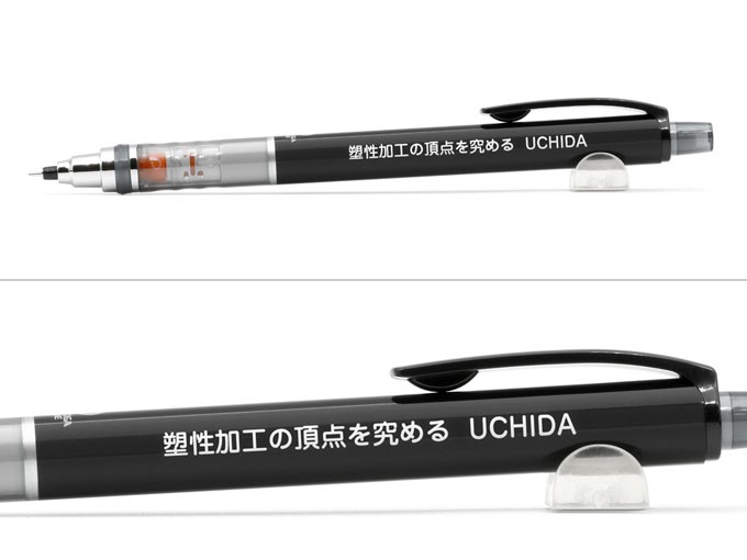 今回ご注文頂きました商品は三菱uniクルトガ スタンダードモデル 0.5mmです。クルトガエンジン搭載でいつも一定の細さや濃さで書き続けることができるクルトガのシャープペンですので書くたびに芯が少しずつ回転し、芯先が円すい形に磨耗していくので筆記線にむらができずにキレイに書くことができます。書体を丸ゴシックにすることでメッセージが柔らかい感じに仕上がりました。シャープペンを仕様する頻度の高い学生に人気ですので学校関係や塾等にご支持いただいております。