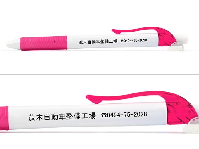 ぺんてるエナージェル・エックス(名入れ専用品)0.5mmへ名入れをさせて頂きました。エナージェルインキを採用したことで、なめらかな書き味とさっと乾く速乾性を実現しました。優れた速乾性で手を汚す心配もいりません。本体軸が白ですので、販促品やノベルティに適した商品です。シンプルに社名+電話番号を名入れさせて頂きました。白軸ですので、文字がとても映えて見やすい仕上がりになっております。