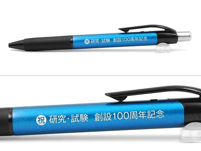 何度でも書き直しが出来る三菱uniユニボールR:E 0.5mm メタリック塗装へ名入れさせて頂きました。鮮やかなボディカラーでスマートなデザインとなっていますので、老若男女問わず愛用して頂けるボールペンです。一番見やすい角ゴシック体で印刷させて頂きました。画数の多い漢字もキレイに仕上がっています。イラストを使うことでお祝いの記念品だとすぐわかります。のし箱に入れさせて頂き納品致しました。