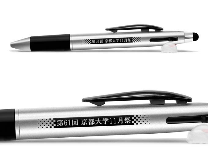 使い勝手の良い3色ボールペン(黒・赤・青)にスマホやタブレットの操作に便利なタッチペンが付いた弊社オリジナル商品タッチペン付き3色ボールペン 0.7mmへ名入れさせて頂きました。こちらの商品は比較的お買い求めやすいボールペンとなっています。単色印刷はもちろんフルカラー印刷も出来ます。印刷内容はデータ入稿で頂きました。デザイン、本体の色、名入れの色がとても合っており、素敵なボールペンに仕上がっています。