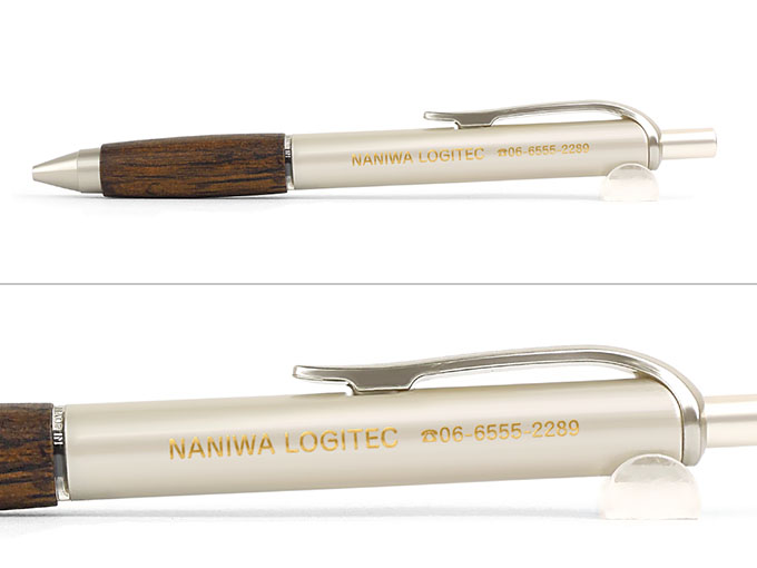 今回ご注文を頂きました商品は三菱鉛筆(uni)ピュアモルト500 0.5mmへ名入れさせて頂きました。グリップ部分にウイスキー熟成後の樽材を使用した味わいの感じられる木製ペンです。記念品として大変人気がある商品です。印刷文字が20文字以上御座いますので、社名と電話番号の文字の大きさを変える事でバランスの良い仕上がりになりました。送る際に便利なのし箱に入れさせて頂きました。