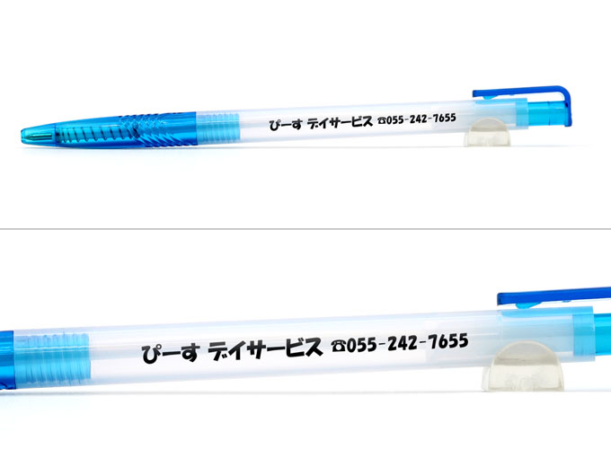 弊社オリジナルボールペンのスリムライン 0.7mmへ名入れをさせて頂きました。数ある当サイトの商品の中で最も安い価格でご提供できる名入れボールペンです。ノベルティや販促品を大量にお配りいただく時に最適な激安ボールペンです。半透明ボディですので、濃いめのお色で印刷すると、文字が目立つのでお勧めです。書体をPOP体、さらに平仮名をご使用することで柔らかく明るい感じに仕上がりました。配る際に便利なのし箱を一緒に納品させて頂きました。