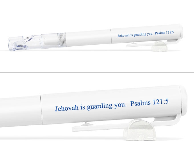 弊社オリジナルボールペン、ホイッスル付きライトペン 0.7mmへ名入れ。ボールペンにLEDライトとホイッスルの付いた多機能ペンです。ボタン電池が予め搭載しておりますので、急な停電や災害時に持っているといざという時の安心材料になります。白軸のボディに青の名入れですと、文字がとても映えて目立ちますので、販促品はもちろんメッセージ入りのプレゼントとしても喜ばれる事間違いないです。英字を明朝体で入れますと文字数が多くても綺麗に仕上がります。