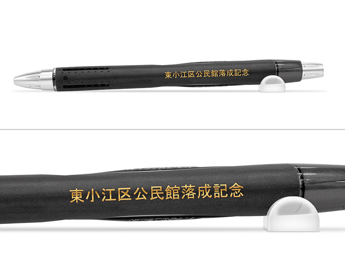 三菱uniのくせになるなめらかな書き味でおなじみのジェットストリームシリーズ。ジェットストリーム ラバーボディ 0.7mmへ名入れ致しました。クセになるなめらかな書き味と優れた速乾性が特徴です。その為、手が汚れるストレスも軽減します。人気の高いラバーボディタイプとなっており、握りやすいラバーボディは長時間書いても疲れにくくなっております。今回、書体は角ゴシックで本体色ガンメタリックに金の印刷色で名入れさせて頂きました。かっこいい仕上がりとなっております。ボールペンはのし箱に入れて納品致しました。