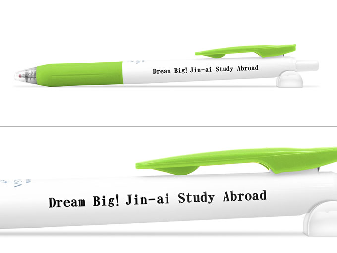 今回はペンの軸・グリップ・クリップ部に細菌の増殖を抑える無機系抗菌剤を配合していますサラサクリップ (白軸/抗菌仕様) 0.5mmへ名入れさせて頂きました。ゼブラのサラサシリーズの中でも特に好評を頂いている商品です。学生や女性に人気のあるボールペンです。