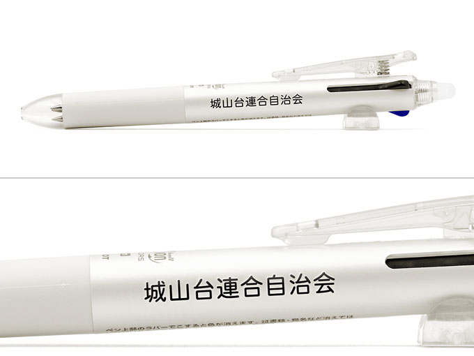 販促品にオススメの名入れ専用品は、印字した文字が目立つ白軸。こちらのフリクションにはとても美しい名入れが出来ます。