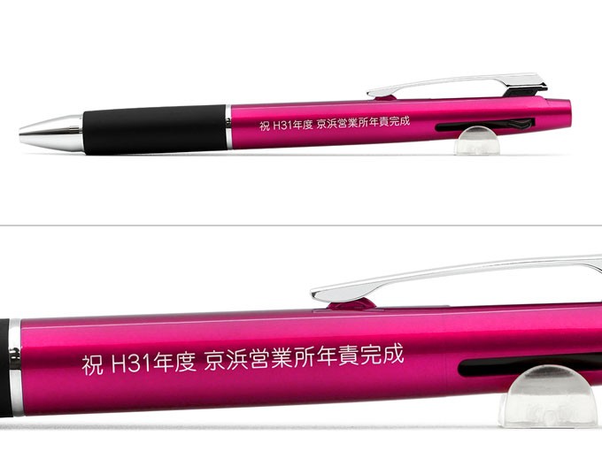 国産ボールペン人気ナンバーワン!くせになるなめらかな書き味でおなじみのジェットストリームシリーズ。日本が誇る三菱UNIの国産ボールペンです。世界初の画期的な新開発インクを搭載し、油性でありながら水性のような書き味を実現。従来の油性ボールペンと比較して最大40%も低い筆記抵抗でなめらかな書き味を実現(三菱UNI調べ)。しかも優れた速乾性によりにじみにくいという万能タイプのインクを使用しております。また、水性ボールペンのような低粘度のインクを使用することによるインクの漏れや逆流を防ぐスプリングチップ&ツインボール機構を搭載しており、安心してご使用いただけます。こちらの商品は黒・赤2色のボールぺンにシャープペンが付いた多機能ボールペンになっています。本体カラーは女性に人気の高いブラック、ピンク、ライトピンクをご用意しています。英字を印字するなら筆記体もおすすめ。より高級感のある名入れボールペンが作成できます。
