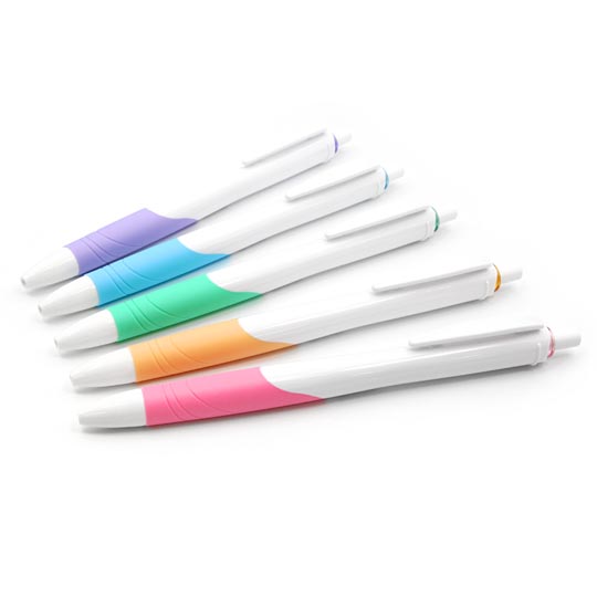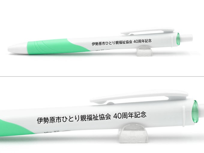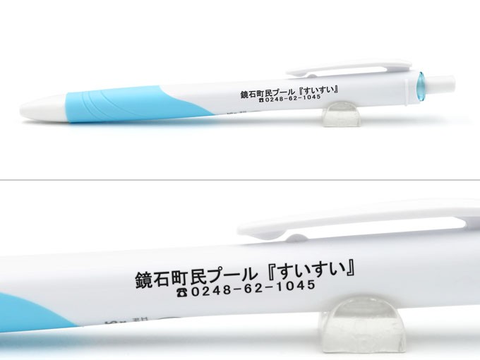 ゼブラの人気商品スラリ。速乾性と書き心地に優れたエマルジョンインクを世界で初めて搭載したボールペン。油性インクと水性インクの良いとこどりをした最新インクで、にじまずさらっとすぐ乾き、濃くて滑らかな書き味が人気の商品です。こちらのボールペンは印字がきれいに映える名入れ専用のホワイトボディで、印字した名前が良く目立ちますので、宣伝効果もぐーんとアップします!パステルカラーのかわいいグリップは特に女性やお子様から好評です。価格もお求めやすく、大量生産にも向いています。エマルジョンインクは耐水性・耐光性にも優れているので公式文書にも使用できます。