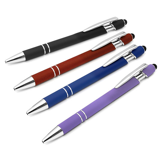 名入れボールペン人気No1のメタリックONEシリーズにタッチペン機能を搭載したスエード調加工のNEWバージョンが登場しました。スマートフォン・タブレットが普及して仕事にも利用する機会が増えていますので、タッチペン付きのボールペンが手元にあると便利だと好評を頂いてます。ボールペン機能については当サイトが研究を重ねて開発した独自の構造と、オリジナルの【書き味なめらかインク】を搭載し、書き味で有名な某国産ボールペンに引けをとらないなめらかな書き心地を実現しました。コストのかかる金属製ボールペンを、自社製作の低価格にてご案内しております。