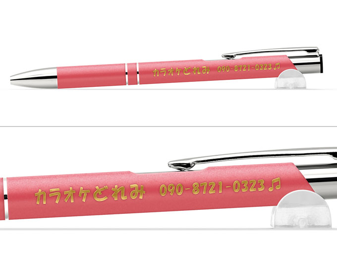メタリックONEシリーズに、パステルカラーの可愛らしいボールペンが新登場しました。5色展開のボディカラーは、50本単位で好きな色を選んでいただくことができます。ペンの芯径は女性から人気が高い、0.5mmの細芯を搭載しています。書き味なめらかインク+0.5mm芯で細かい文字もスラスラ書くことができるので、手帳などへ筆記する時でもストレスがありません。細めの芯と可愛らしい本体色で女性向けの名入れボールペンにぴったりです。「おしゃれでカワイイボールペンを作りたい!」という方におすすめの当サイトオリジナルボールペンです。