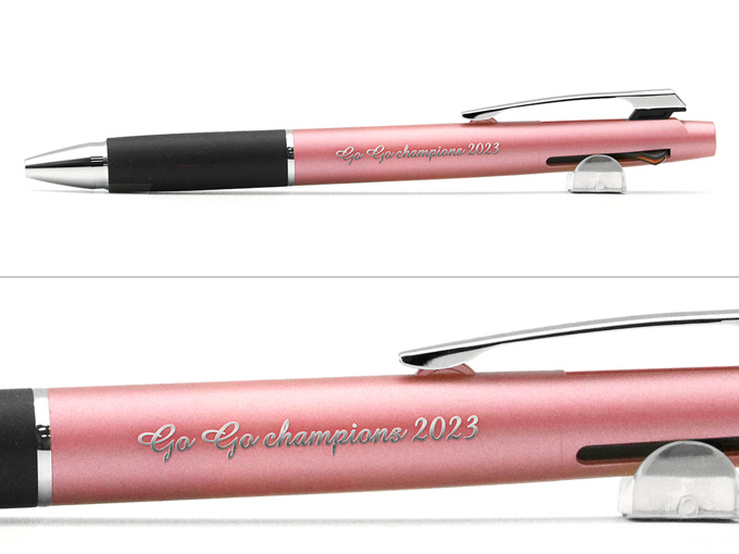 最低ロット 30本~「クセになる、なめらかな書き味。」でお馴染みのジェットストリームシリーズから最もよく使う黒インクには、リフィルチューブを肉薄化することで通常品に比べインク量を約70%増量した「長持ちリフィル」を搭載したジェットストリーム 3色 0.5mm(Newバージョン)が登場。黒・赤・青の3色のインクを搭載しており、赤・青はこれまでと変わらずスライドノックで芯が出てきます。使用頻度の高い「黒」のインクはボールペン上部のノックを押すと出てくる仕様になってますので、使いたい色を間違うことなく選択ができます。販促品としても宣伝効果が期待できる名入れボールペンになるかと思います。