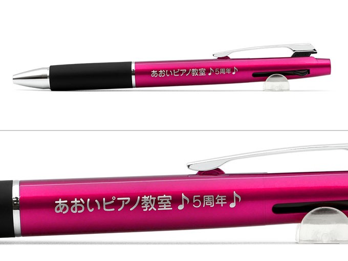 国産ボールペン人気ナンバーワン!くせになるなめらかな書き味でおなじみのジェットストリームシリーズ。日本が誇る三菱UNIの国産ボールペンです。世界初の画期的な新開発インクを搭載し、油性でありながら水性のような書き味を実現。従来の油性ボールペンと比較して最大40%も低い筆記抵抗でなめらかな書き味を実現(三菱UNI調べ)。しかも優れた速乾性によりにじみにくいという万能タイプのインクを使用しております。また、水性ボールペンのような低粘度のインクを使用することによるインクの漏れや逆流を防ぐスプリングチップ&ツインボール機構を搭載しており、安心してご使用いただけます。こちらの商品は黒・赤2色のボールぺンにシャープペンが付いた多機能ボールペンになっています。本体カラーは女性に人気の高いブラック、ピンク、ライトピンクをご用意しています。英字を印字するなら筆記体もおすすめ。より高級感のある名入れボールペンが作成できます。