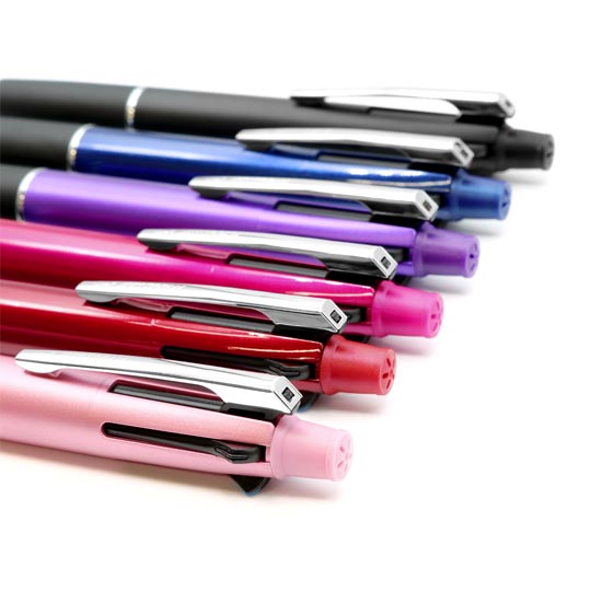 国産ボールペン人気ナンバーワン!くせになるなめらかな書き味でおなじみのジェットストリームシリーズ。日本が誇る三菱UNIの国産ボールペンです。世界初の画期的な新開発インクを搭載し、油性でありながら水性のような書き味を実現。従来の油性ボールペンと比較して最大40%も低い筆記抵抗でなめらかな書き味を実現(三菱UNI調べ)。しかも優れた速乾性によりにじみにくいという万能タイプのインクを使用しております。また、水性ボールペンのような低粘度のインクを使用することによるインクの漏れや逆流を防ぐスプリングチップ&ツインボール機構を搭載しており、安心してご使用いただけます。さらに黒・赤・青・緑の4色のボールペンにシャープペンのついた多機能なペン。本体色は10色の中からお好きな色をお選び頂けます。印刷範囲の広いPAD印刷にも対応。大きな文字や2行での名入れも可能です。