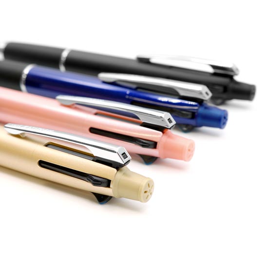 極細ボールペン0.38㎜でも書きやすい、国産ボールペン人気ナンバーワン!くせになるなめらかな書き味でおなじみのジェットストリームシリーズ。日本が誇る三菱UNIの国産ボールペンです。世界初の画期的な新開発インクを搭載し、油性でありながら水性のような書き味を実現。従来の油性ボールペンと比較して最大40%も低い筆記抵抗でなめらかな書き味を実現(三菱UNI調べ)。しかも優れた速乾性によりにじみにくいという万能タイプのインクを使用しております。また、水性ボールペンのような低粘度のインクを使用することによるインクの漏れや逆流を防ぐスプリングチップ&ツインボール機構を搭載しており、安心してご使用いただけます。さらに黒・赤・青・緑の4色のボールペンにシャープペンのついた多機能なペン。本体色は4色の中からお好きな色をお選び頂けます。広い範囲に名入れできるPAD印刷にも対応なので、大きな文字の印字もバッチリです。