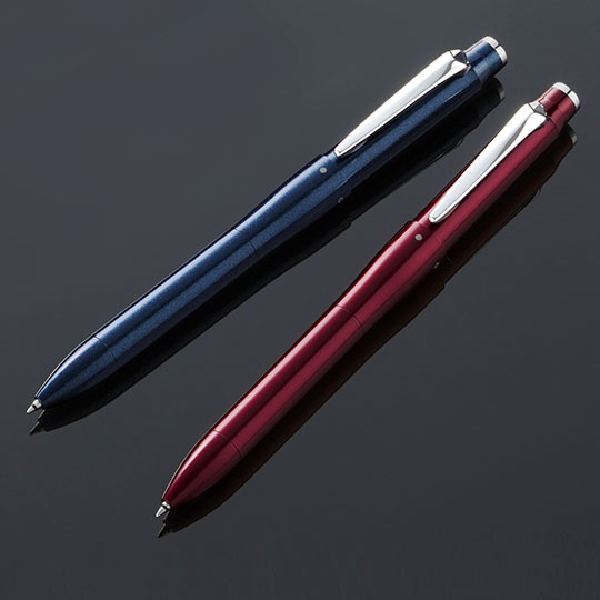 「なめらかさ」を表現する流線形シルエットに、フォーマルな場でも使いやすい高級感のあるマット塗装と実用性の高い黒・赤・青のインクを搭載、さらにシャープペン機能を施したスリムボディの多機能ペンが発売しました。スムーズに切り替えることができる操作しやすい回転繰り出し式ボールペンです。クリップ部分はシルバーでスタイリッシュな雰囲気を出しています。シンプルで重厚感漂うデザインは、記念品や贈り物等にとても喜ばれます。カラーはダークネイビー、ダークボルドーの2色よりお選び頂けます。