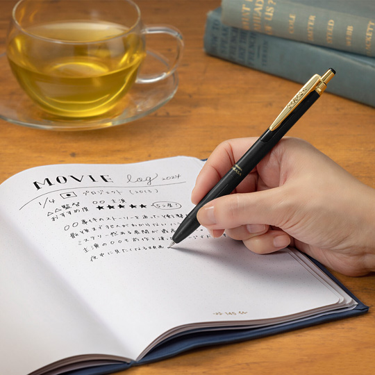 高級感の感じられる大人のサラサグランド 0.5mm(Newバージョン)が発売しました。金色のクリップ、マットな質感の塗装は手帳やノート、ポケット等に刺した際に一際目を引く存在感が御座います。挟みやすいクリップは金属製で実現。また本体軸の素材を真鍮からアルミにしたことで、軸の太さは変えずに重量が軽くなり、筆記時の負担も軽減されることが期待できるボールペンになっております。サラサの特徴である、さらさらとしたなめらかな書き味で耐水性にも優れています。マットブラックは普段使いでも気兼ねなく使えると好評で、記念品やプレゼントとしても大変人気があります。インクは実用性の高い『黒』を採用しております。