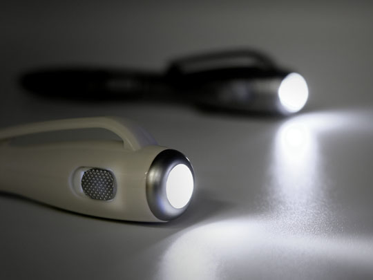 LEDライトの付いたとても便利なボールペンで、1本あればどんな時にも安心のLEDフラッシュライトボールペンの本体色にシルバーとホワイトが追加されました!可愛らしい印象のパステルとは対照的に、落ち着いた雰囲気で男性にも喜ばれます。ライト付きのボールペンは、災害や停電などの緊急時にとても役立ったとの声も頂いております。0.7㎜の芯はドイツ製のインク使用ですので、書き心地もとても良いです。暗がりでのサインや書類の記入などにもご使用いただけます。白や銀の本体には黒をはじめ、マゼンダや青などの濃いめの色で名前を印刷するとよく目立ちます。本体色は10本単位でご選択が可能で、どちらか1色でのご注文も受け付けています。ちょっと変わったもので高級感のある名入れボールペンをお探しの方にオススメです!