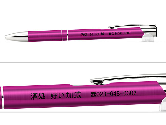高級感のある金属製ボールペンで、シンプルかつスタイリッシュなデザインがとても美しい名入れボールペン市場のオリジナルボールペンです。光沢のある美しいカラーとスリムなボディが上品な雰囲気を漂わせます。手帳、ポケット、ペンケースなどにもスッと収まり使い勝手がよいと好評の名入れボールペンです。当サイトオリジナルのボールペン機構とドイツ製の書き味なめらかインク搭載により、書き心地がさらに改善しました。インクの発色もとてもよく、綺麗な文字を書くことができます。渡した多くの方に喜んでもらえる、名入れボールペンにおすすめの1本です。全9色の豊富な本体カラーは50本単位で自由な色をお選びいただけます。