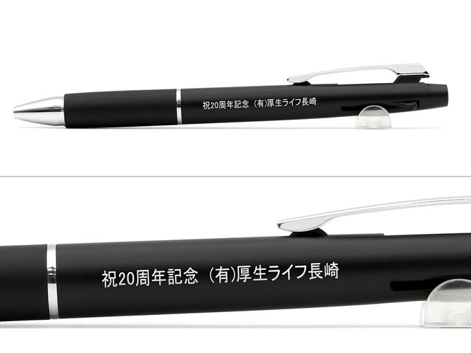 国産ボールペン人気ナンバーワン!くせになるなめらかな書き味でおなじみのジェットストリームシリーズ。日本が誇る三菱UNIの国産ボールペンです。世界初の画期的な新開発インクを搭載し、油性でありながら水性のような書き味を実現。従来の油性ボールペンと比較して最大40%も低い筆記抵抗でなめらかな書き味を実現(三菱UNI調べ)。しかも優れた速乾性によりにじみにくいという万能タイプのインクを使用しております。また、水性ボールペンのような低粘度のインクを使用することによるインクの漏れや逆流を防ぐスプリングチップ&ツインボール機構を搭載しており、安心してご使用いただけます。さらに黒・赤2色のボールペンとシャープペンが付いた多機能ボールペンになっています。本体カラーはブラック・ネイビー・ボルドーと落ち着いた印象のボディでビジネスシーンでも大活躍できる多機能ペンです。名入れの印刷色は銀色が一番人気です。
