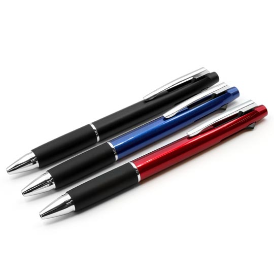 国産ボールペン人気ナンバーワン!くせになるなめらかな書き味でおなじみのジェットストリームシリーズ。日本が誇る三菱UNIの国産ボールペンです。世界初の画期的な新開発インクを搭載し、油性でありながら水性のような書き味を実現。従来の油性ボールペンと比較して最大40%も低い筆記抵抗でなめらかな書き味を実現(三菱UNI調べ)。しかも優れた速乾性によりにじみにくいという万能タイプのインクを使用しております。また、水性ボールペンのような低粘度のインクを使用することによるインクの漏れや逆流を防ぐスプリングチップ&ツインボール機構を搭載しており、安心してご使用いただけます。さらに黒・赤2色のボールペンとシャープペンが付いた多機能ボールペンになっています。本体カラーはブラック・ネイビー・ボルドーと落ち着いた印象のボディでビジネスシーンでも大活躍できる多機能ペンです。名入れの印刷色は銀色が一番人気です。
