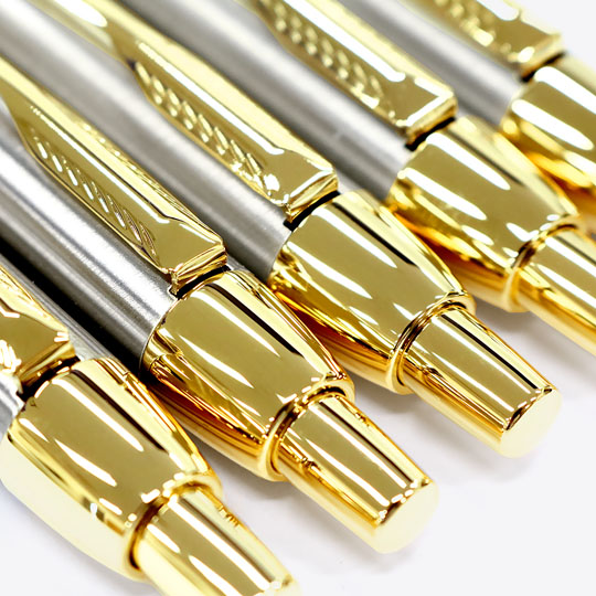 すっきりとシンプルなデザインで美しいフォルムの パーカー・IM GTボールペン。高級ボールペンの代名詞として高い人気があります。しっかりとした重みを感じる大人のボールペンで、特長のあるクリップデザインはポケットに収めた時にさりげないオシャレを演出してくれます。本体は落ち着きのあるシルバーになっておりペン先・ノック部分に金色を施した高級感のある1本になっています。ブランド品のボールペンの中では比較的低価格で手に入るので、高級ボールペンでノベルティを作成したい方や、記念品・ギフトの作成を考えている方にオススメです。