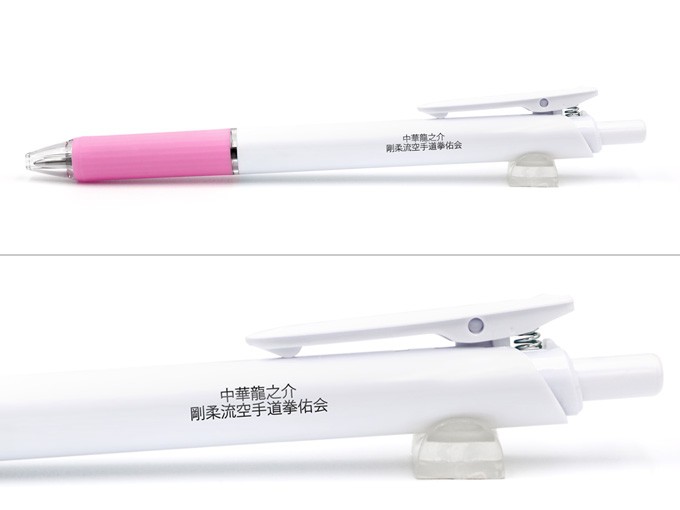 書き味滑らかで長時間使用しても疲れません。エコマーク商品・ISO14001認定取得工場で製造されたグリーン購入法適合商品です。その為環境に配慮した企業イメージをアピールできます。ボールペン本体は名入れが映える白軸になっており金額もお手頃なので名入れノベルティとして最適です。クリップは厚みのある書類やバインダーにも挟みやすいワイドオープンクリップを採用しています。グリップカラーがピンク、ブルー、グレーの3種類あります。
