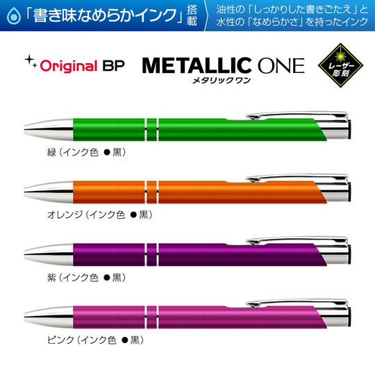 名入れボールペン市場人気NO1!レーザー彫刻対応のメタリックONEが『書き味なめらかインク』を搭載して新登場しました。