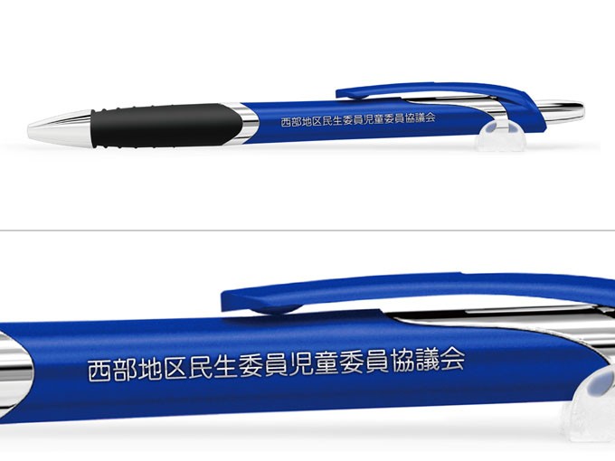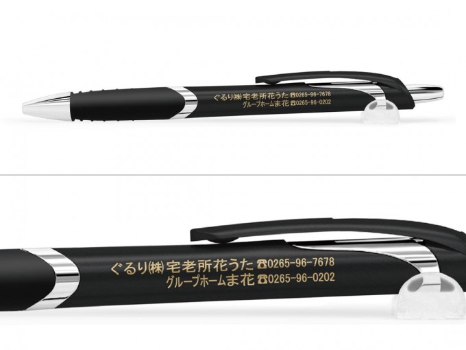 メッキのアクセントが効いたボディへマットに輝く特殊塗装を施したことで、さらに質感を向上させました。本体のカラーはシックな5色で、50本単位でお好きな色をお選びいただけます。印刷範囲の広いPAD印刷にも対応していますで、大きなロゴや2行での名入れも可能な商品です。