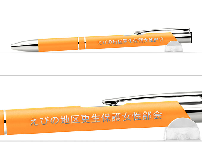 メタリックONEシリーズに、パステルカラーの可愛らしいボールペンが新登場しました。5色展開のボディカラーは、50本単位で好きな色を選んでいただくことができます。ペンの芯径は女性から人気が高い、0.5mmの細芯を搭載しています。書き味なめらかインク+0.5mm芯で細かい文字もスラスラ書くことができるので、手帳などへ筆記する時でもストレスがありません。細めの芯と可愛らしい本体色で女性向けの名入れボールペンにぴったりです。「おしゃれでカワイイボールペンを作りたい!」という方におすすめの当サイトオリジナルボールペンです。