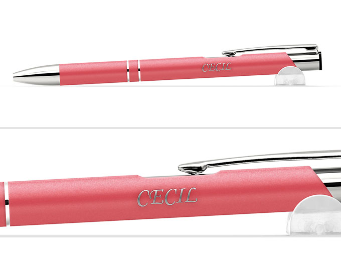 メタリックONEシリーズに、パステルカラーの可愛らしいボールペンが新登場しました。5色展開のボディカラーは、50本単位で好きな色を選んでいただくことができます。ペンの芯径は女性から人気が高い、0.5mmの細芯を搭載しています。書き味なめらかインク+0.5mm芯で細かい文字もスラスラ書くことができるので、手帳などへ筆記する時でもストレスがありません。細めの芯と可愛らしい本体色で女性向けの名入れボールペンにぴったりです。「おしゃれでカワイイボールペンを作りたい!」という方におすすめの当サイトオリジナルボールペンです。