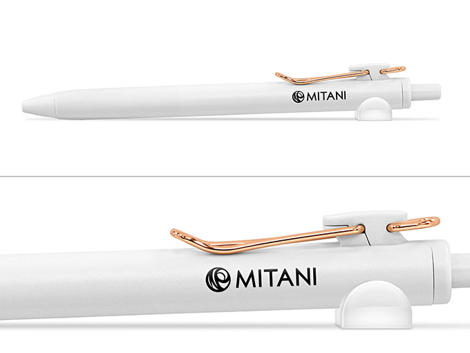 新開発した『uni-ball one(ユニボール ワン)』のインクは、一般的なゲルインクと異なり、色材の紙繊維への浸透を極力抑える、新しい顔料を使用しています。それにより、紙面上の色材が本来の色を発色し、黒はより濃く、カラーはより鮮やかに発色する事が最大の魅力となっております。さらにインクの速乾性も高く、にじみや裏抜けをすることがない為、ストレスなく筆記することが出来ます。シンプルでストレートな軸デザインとなっており機能性も抜群です。手帳に挟みやすいか可動式クリップはローズゴールド仕上げになっていますので、上質で上品な印象となり名入れボールペンにお薦めの1本です。